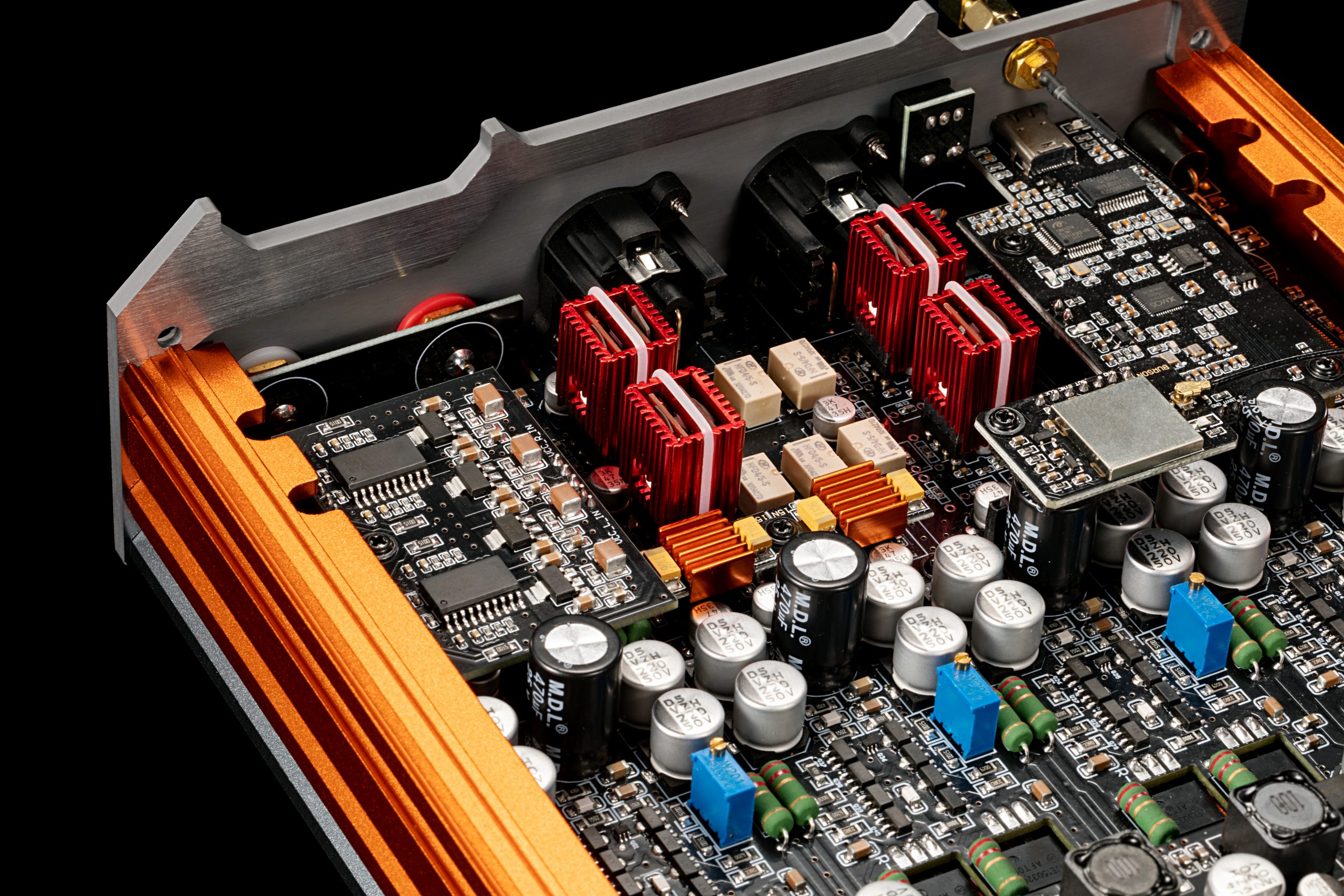 A spacecraft-inspired enclosure features precision-shaped fins and vents to optimise heat dissipation. This efficient design ensures reliable and stable Class-A operation to minimise noise, heat stress and distortion at all power levels, even during long listening sessions at high bias.